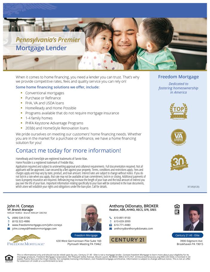 For Superior Real Estate Representation in the Delaware Valley, Philadelphia, Delaware County, Chester County, Montgomery County and surrounding areas in Pennsylvania… call Anthony DiDonato.