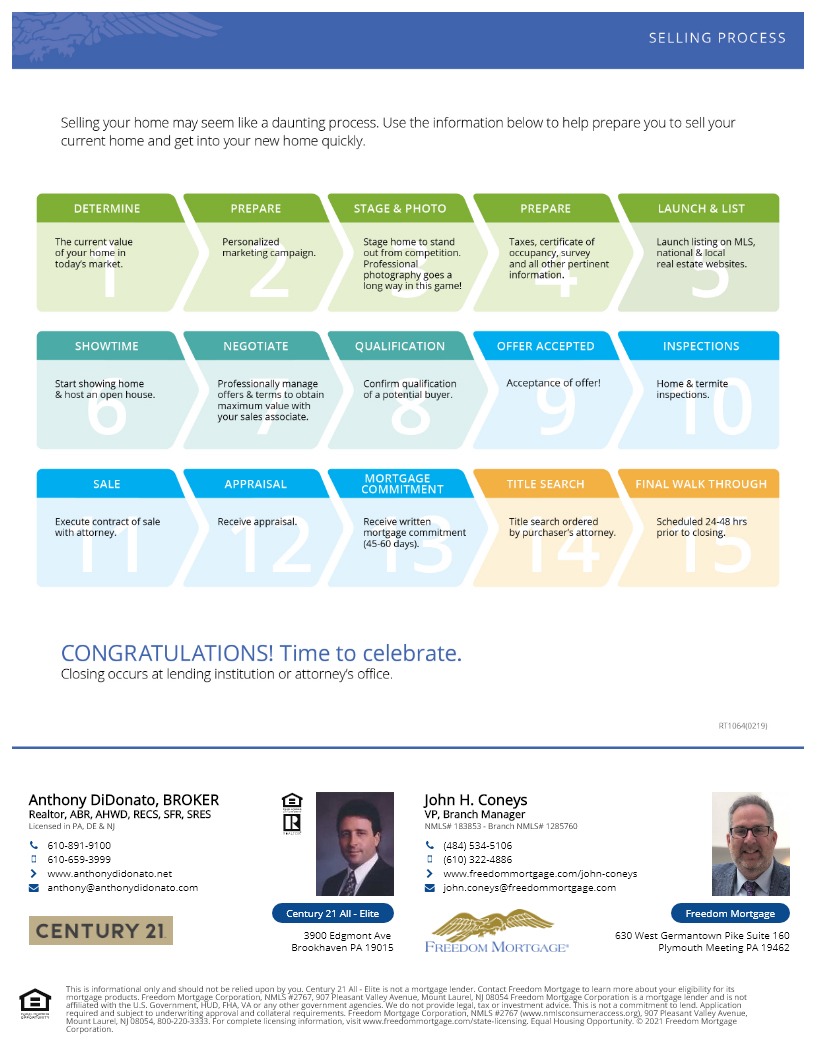 The road to selling a home can be daunting without the help of a professional real estate agent. It’s our goal to get your home sold quickly with you being educated and prepared for what’s to come. John Coneys of Freedom Mortgage, (NMLS# 183853 – 610.322.4886) and I can help you figure out how the below info pertains to you and how we can help not only sell your current home but also get you into your dream home fast! #RealEstate #Realtor #BuyingAHome #FreedomFast #RoadtoFreedom #LetFreedomHelp